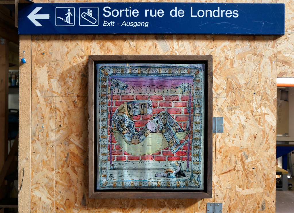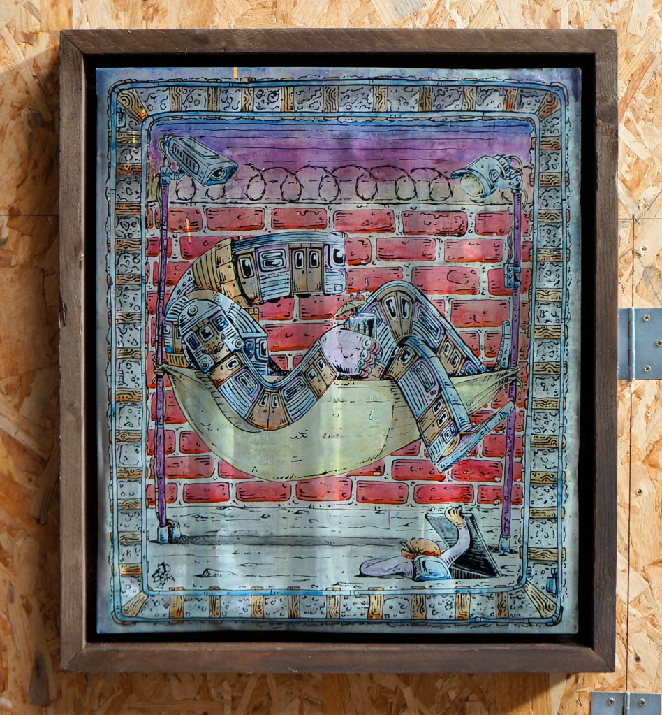 FARNIENTE – Encre acrylique et Tipex Krink sur zinc de Mr Bibi – 75×75 cm